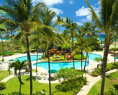 Nestled on 25 breathtaking oceanfront acres on Kauai’s eastern shore, Aqua Kauai Beach Resort offers true Hawaiian hospitality and excellent amenities and activities that embrace our island lifestyle. Our resort offers something for everyone: 4 idyllic swimming pools with waterfalls and a waterslide, on-site dining, spa, cultural activities, live entertainment, and much more. Centrally-located, our resort offers easy access to the best of Kauai, from the lush mountains of the north shore to the staggering scenery of Waimea Canyon to the south, and everything in-between. Immerse yourself in Kauai’s most authentic and complete resort experience
